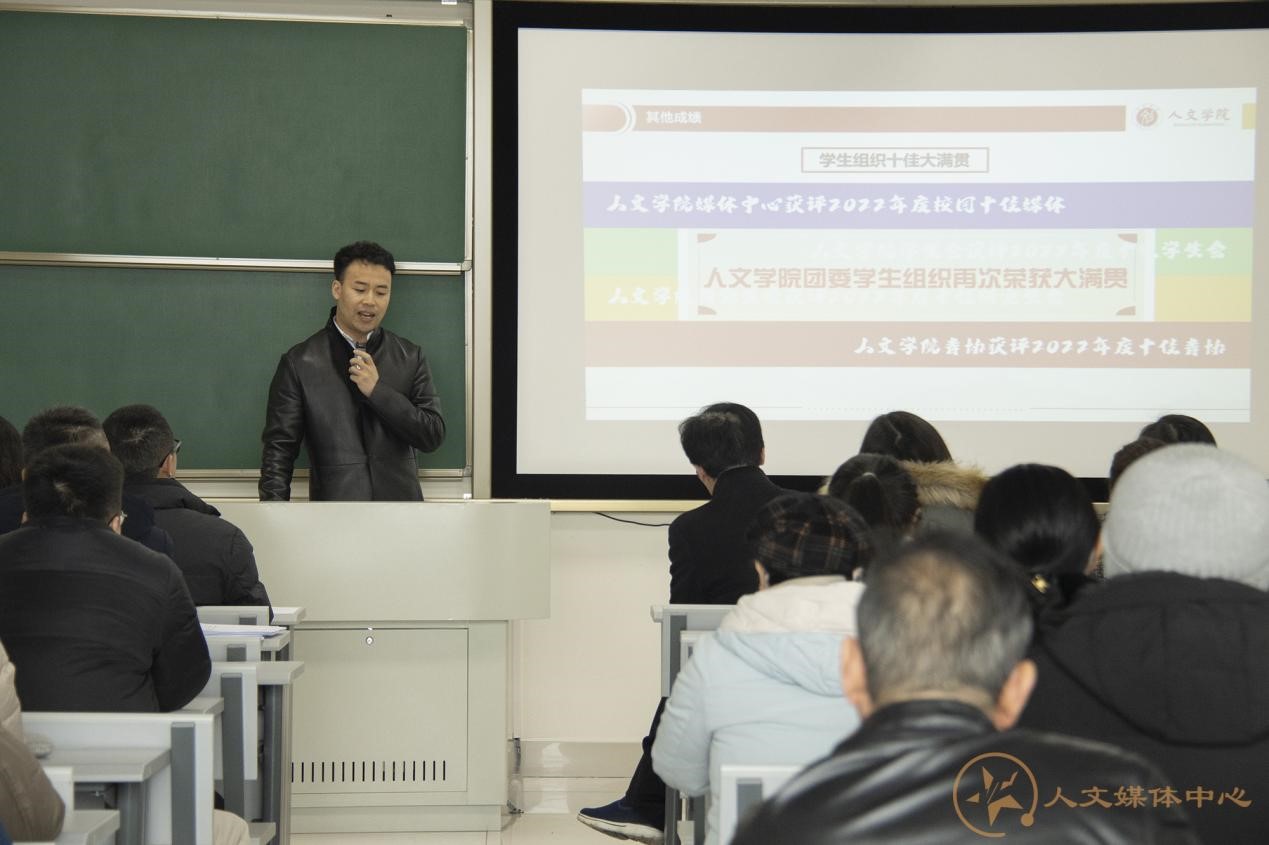执行院长刘占祥作2022年学院行政工作述职。刘院长从“人才师资工作”“学科基础工作”“人才培养工作”“内部管理工作”“个人工作述职及感想”五个方面来总结过去学院一年的工作。2022年,学院在精准引才、人才培育方面获得突破性进展。教育部第五轮学科评估结果公布,我院中国语言文学和新闻与传播学排名再创新高。2022年学院教师在高级别项目、高水平学术论文方面多有斩获。在人才培养方面,“双万计划”国家级一流本科建设专业稳步进行,人才培养质量保障体系进一步建立健全。在内部管理方面,学院治理力求规范,统筹谋划提升管理水平。谈到自己的工作感想,刘院长以“办公道事,做厚道人”表明自己的工作态度,并对学院全体教师及班子成员大力支持表示感谢。