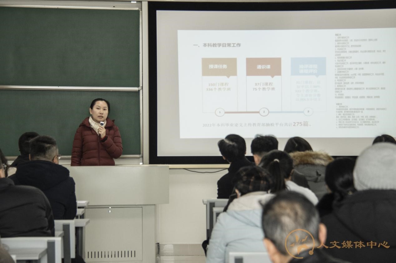党委书记向仲敏作学院2022年党建工作述职,向书记从“深入学习贯彻习近平新时代中国特色社会主义思想”“探索基层党建创新,切实增强学院党委组织功能”“坚持文化培源,深度参与学校美育工作”“全过程发力,切实推动学院改革发展”四个方面向学院老师们汇报了2022年学院党建工作的工作思路、举措及取得的相关成绩,充分体现了学院党委政治核心作用,为全面推动学院高质量发展提供了有力保障。