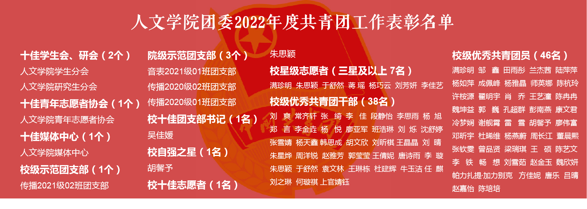 人文学院团委2022年度共青团工作表现优秀,获得多项表彰: