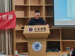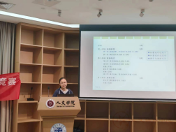 竞赛进行到最后环节,音乐系丁旭阳老师、中文系董首一老师、传播系张诗婷老师陆续上场。丁老师带来了《合唱体验与艺术实践》,他通过合唱声部的介绍、呼吸的训练以及节奏与和声的训练进行讲解。董老师的参赛题目则是《<老人与海>中的硬汉精神》,在讲授过程中,董老师与在场评委进行了深入的互动与交流,现场气氛活跃。张老师结合实例对《数据与统计分析》这门课进行了生动的讲解和阐释。