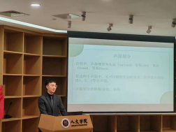 接下来,周阳、邓淞露、赵旭三位中文系的老师陆续上场,周老师以古文《郑伯克段于鄢》为例,对古文的字形字义进行了分析,并在讲课过程中,穿插了一些颇具趣味性的图片辅助理解,妙趣横生。邓老师的授课主题是《弃物的文学史》,她主要讲解了中国古代文学发展的历程中“弃物”的内涵变化,整个过程结合中国古代文献以及一些外国学者的研究,内容丰富。赵旭老师则由中国古代著名诗人杜甫的诗作讲起,讲解了“工拙相半”对诗歌艺术性提升有着重要作用等相关观点。