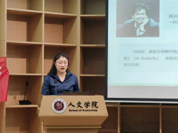 接下来上场的是3位来自中文系的老师。周珉佳老师主讲黄哲伦戏剧《蝴蝶君》。魏刚老师通过文学实例和朗诵视频的欣赏,对为什么要进行文学情感的体察与解读进行了详细叙述。李栋老师主讲《柳永<八声甘州>中的登高临远》,通过对柳永词作的赏析,她对“登高临远”这一诗词传统主题进行了细致的阐释。