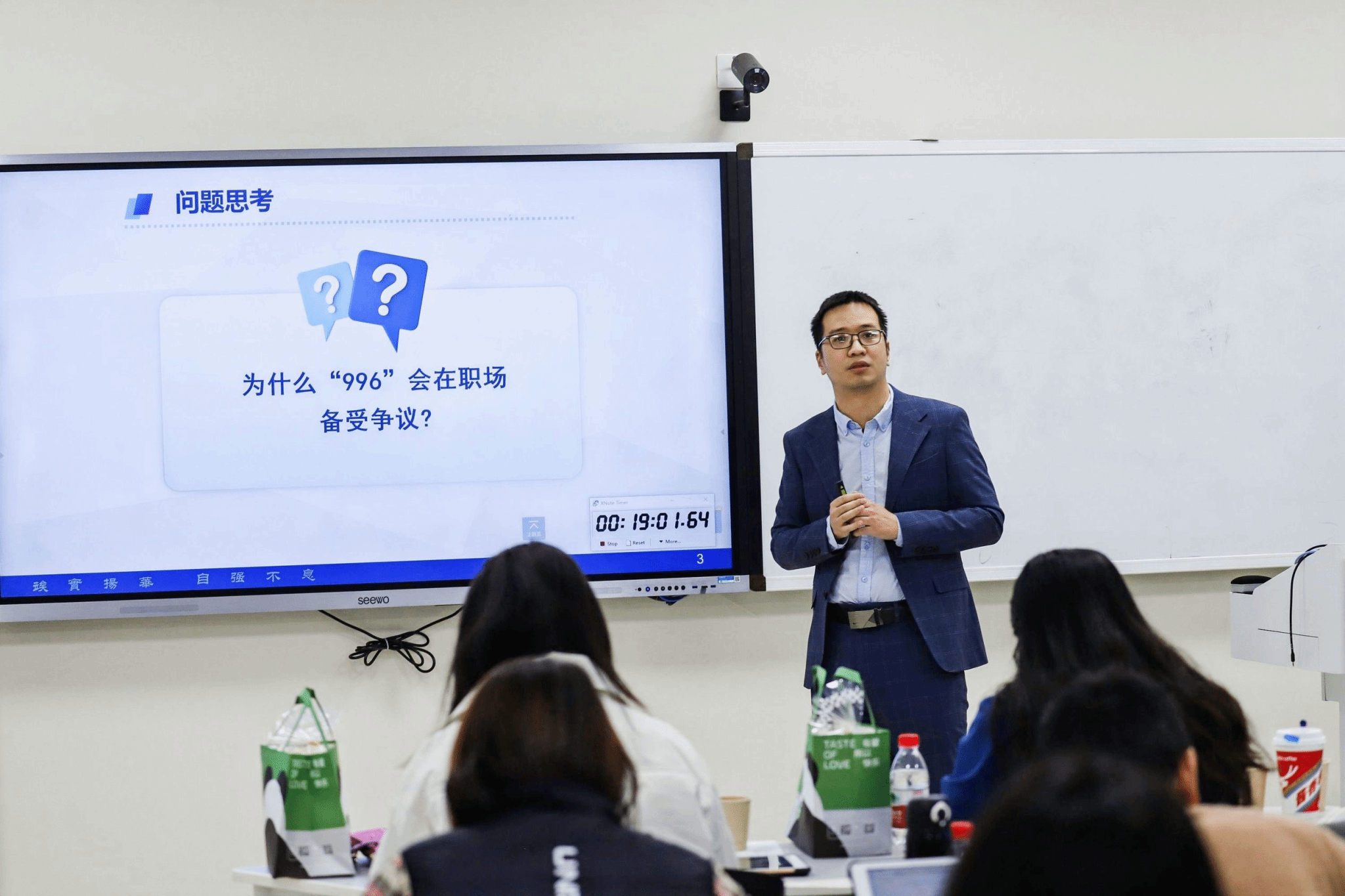 学院第二位上场的马超老师主要讲解了“霍桑效应”的积极与消极影响,他以热议话题“996”为切入点,引出了霍桑实验中的管理学原理并进行分析。紧接着,他指出霍桑实验对新闻传播学的启示:重视受众的需求,生活,实际、群众三要素紧紧相连。此外,马老师还聚焦霍桑效应负效应,介绍了“霍桑效应”在新闻传播界的表现与治理。最后,马老师结合了习近平新时代中国特色社会主义思想,指出新闻传播者在新时代的职责。