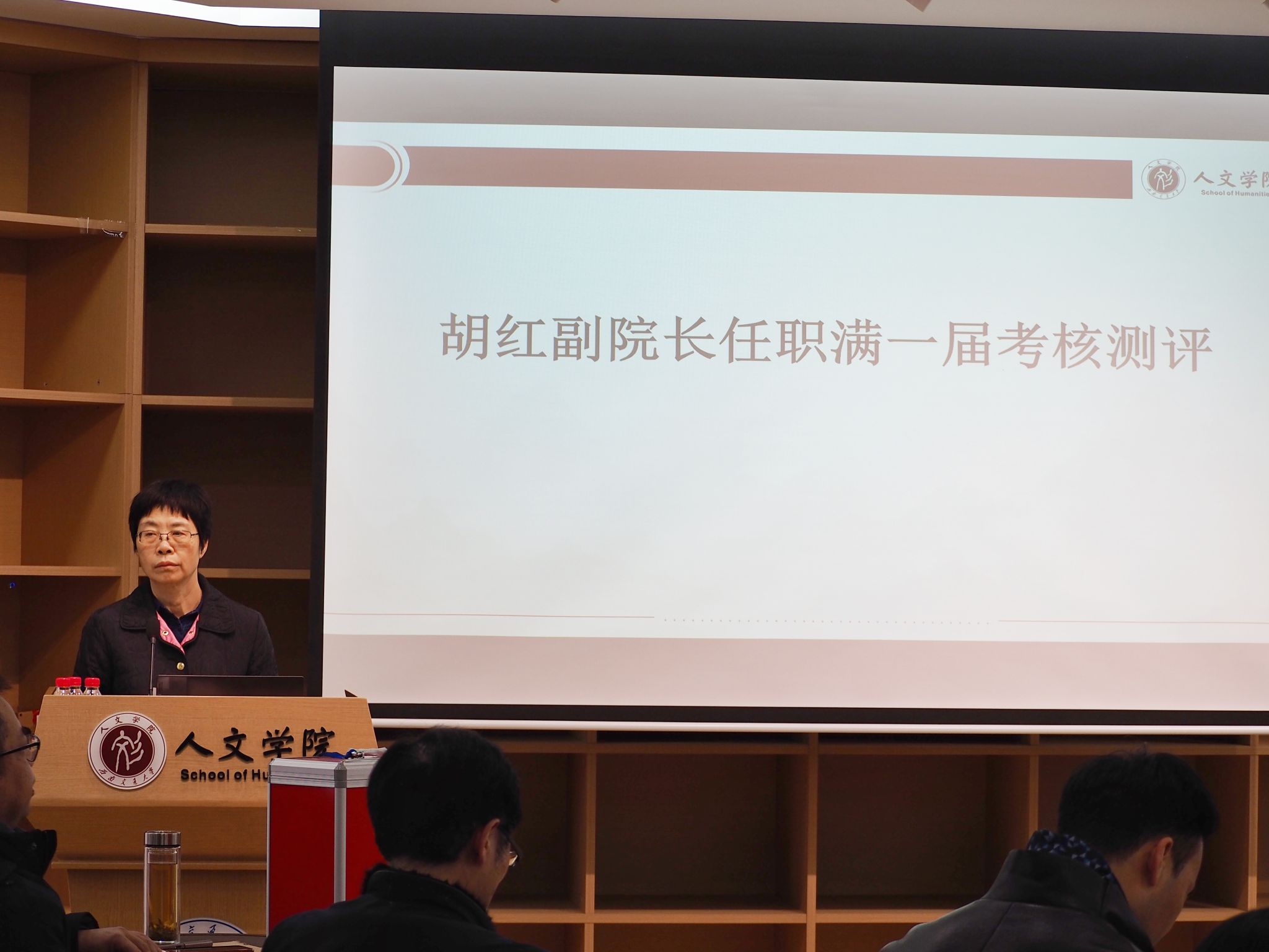 大会伊始,学校组织部对胡红副院长任职满一届进行考核测评,这一环节由正处级组织员陈兴莲主持。随后,向仲敏书记介绍新入职教师廖一儒和周桎宏,欢迎他们加入人文大家庭。