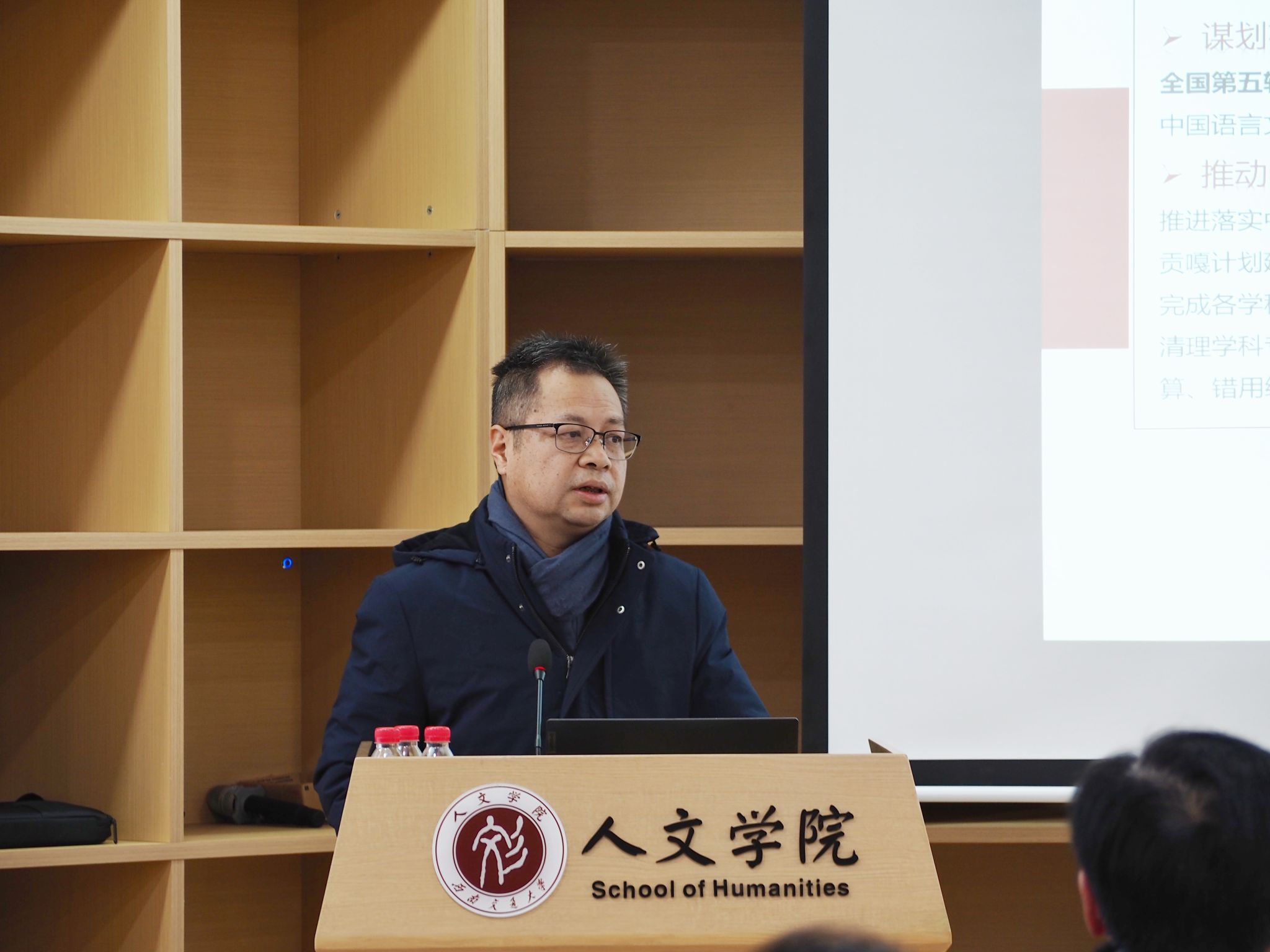 沈如泉副院长对其分管的学科建设及学位与研究生工作进行了年度工作汇报。沈院长从学科第五轮评估建设、学科“双一流”建设、社科项目申报、专硕学位点核验、研究生论文抽检、研究生招生工作等方面对2023年工作进行了总结。