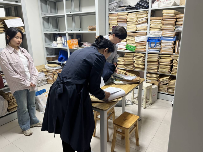 最后,专家组在X31004对预评估抽评材料进行了形式审查,学院向专家组汇报了相关教学资料的保存情况与调阅机制,并陪同专家组参观了X31120资料室。