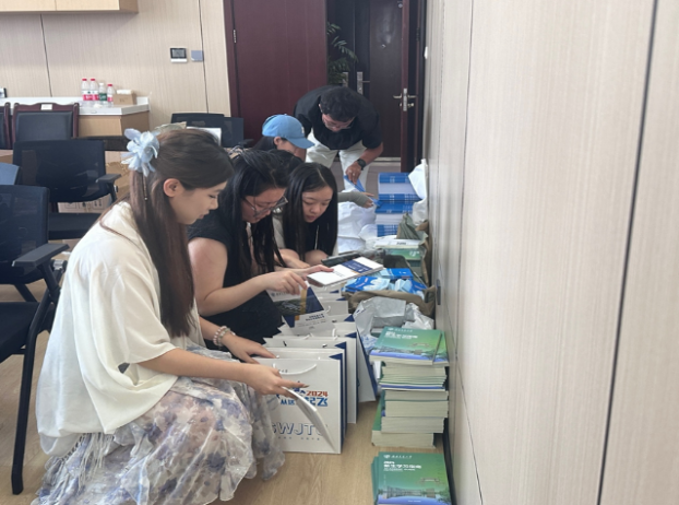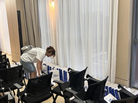 迎新工作筹备会。学院团委书记刘爽老师、新生辅导员朱思颖老师、团委学生干部、2024级新生班协以及迎新志愿者参加了此次筹备会。团委学生干部、班协以及志愿者在朱思颖老师的指导下开始忙碌地开展筹备工作。从搬运新生入学相关物资并整齐装袋到精心布置木瓜视频