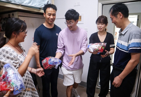 迎新结束后,中秋佳节之际,学院领导和辅导员老师们走访了新生宿舍。老师们与新生们亲切交谈,关心同学们是否适应大学的校园生活。老师们还鼓励同学们,要尽快完成角色转换以适应新环境要珍惜大学时光,勤奋学习,积极参与校园活动,努力成长为德智体美劳全面发展的社会主义建设者和接班人。