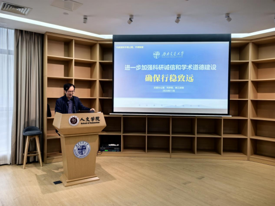 随后,院长刘占祥从新时期科研诚信工作的大背景出发,强调了学校对于师德师风建设的高度重视,并结合多个实际案例详细阐述了科研道德失范行为的不同表现以及科研失范行为的严重后果。重点强调了科研经费使用必须遵循真实性、相关性、合理性原则,确保经费因公支出,为学院科研工作的健康发展筑牢防线。
