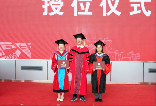 关于拟授予2025届毕业生学士/硕士/博士学位的决定》。伴随着热烈的掌声,2025届毕业生们依次登台,学院领导、系所老师为同学们扶正流苏,颁发学位证书,祝贺大家圆满完成学业,在人生新篇中展翅高飞。