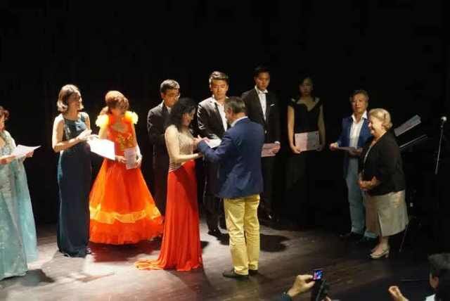 我院音乐系杨树莉教授应北京国际喜歌剧中心邀请,于2015年7月17日-8月8日赴意、法参加“丝绸之歌-2015中意法歌剧艺术节”展演活动,并在歌剧节期间出演了普契尼的歌剧“波西米亚人”(又名“艺术家的生涯”)和两场歌剧作品音乐会。此次演出获得了法国喀纳科城市市长Jaque Bruno颁发的歌剧作品优秀演唱奖,得到当地主流媒体的广泛关注。