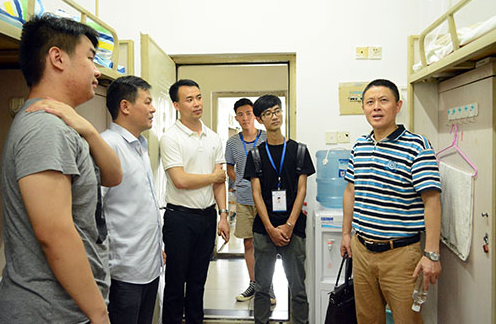 新生寝室,向书记简单地介绍了人文学科优势,勉励大家认真读书,并与新生家长也进行了详细交谈。