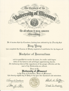 和密苏里大学两校合作的2+2 项目为学生们打开了另外一扇门,让他们的人生多了一个选择。两年的本科学习经历使杨婧从刚出国的那个腼腆胆小的小姑娘,变得更加独立, 能够独挡一面。独特的教学方法,精细的专业划分,使得学生们非常垂直而精准地选择他们最热爱的领域。密大新闻学院给学生提供的全宇宙最强大的官方资源和专业教授使学生们如鱼得水的在知识的海洋里畅游。 高要求快节奏的实地专业训练使学生们在心灵和肉体经受双重压力的同时抗压能力越来越强。同时,他们的人生轨迹、处事方式、价值观也逐渐被树立,成为具有优秀专业能力的超人。