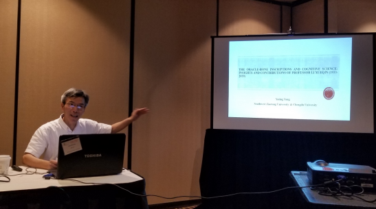 2019年4月15日,由我校与美国国家社会科学学会、中国手稿文化学会联合主办的“认知甲骨学——纪念李学勤教授(1933-2019)”专题研讨会,作为美国国家社会科学学会年会的分会,在美国拉斯维加斯举行。我院中文系博士生杨煜婷的会议论文“The Oracle-Bone Inscriptions and Cognitive Science: Insights and Contributions of Professor Li Xueqin (1933-2019)”,对已故国学大师、著名古文字学家李学勤先生的甲骨文研究与认知科学的关系,作了首次探讨。杨煜婷认为,李学勤先生以为用商、周甲骨文等商、周古文字的知识去考释更早的文字或符号,只能是探索性的试验,而早期符号向文字的演变,应该与认知科学相结合的观点,在甲骨文等古文字研究中具有革命性的意义,对于认知语言学尤其是认知语义学的研究,也有着重要的启示。杨煜婷的论文由邢文教授代为宣讲。邢文教授的论文“Cognitive Paleography and Cognitive Oracle-Bone Studies”论述了认知古文字学与认知甲骨学的关系,以及认知甲骨学的研究对象与内容方法等,并列举了生动的甲骨文字例加以解说,与西方学者作了饶有趣味的探讨。