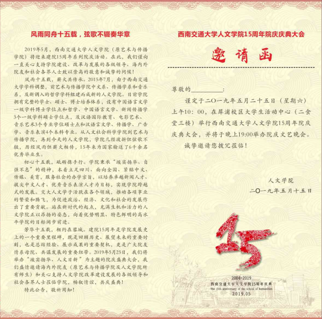 [院庆十五周年]木瓜视频 院庆十五周年庆典邀请函