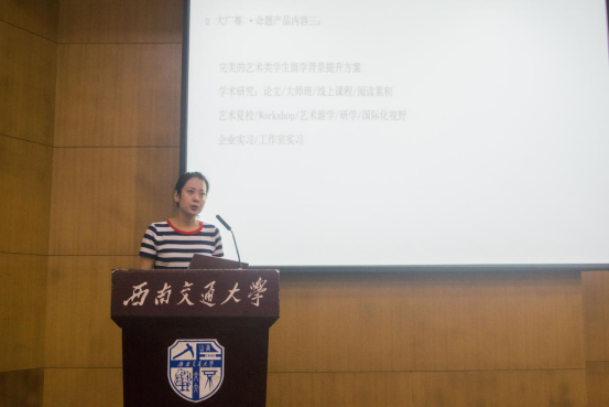 接下来,由乙木国际艺术联盟和集木风尚命题的程思宇、龚晓燕、李迪迪三位老师与同学们面对面讲解命题单位策略单。首先由程思宇老师讲解乙木国际艺术联盟命题,品牌要求针对16-25岁高中及大学生,主打艺术与名师,海外艺术与设计的领路者,打造高端艺术作品集定制服务,最前沿的教学系统为未来的艺术家设计师提供最完善的平台形象。传递艺术性,先锋时尚理念与品牌教育价值。