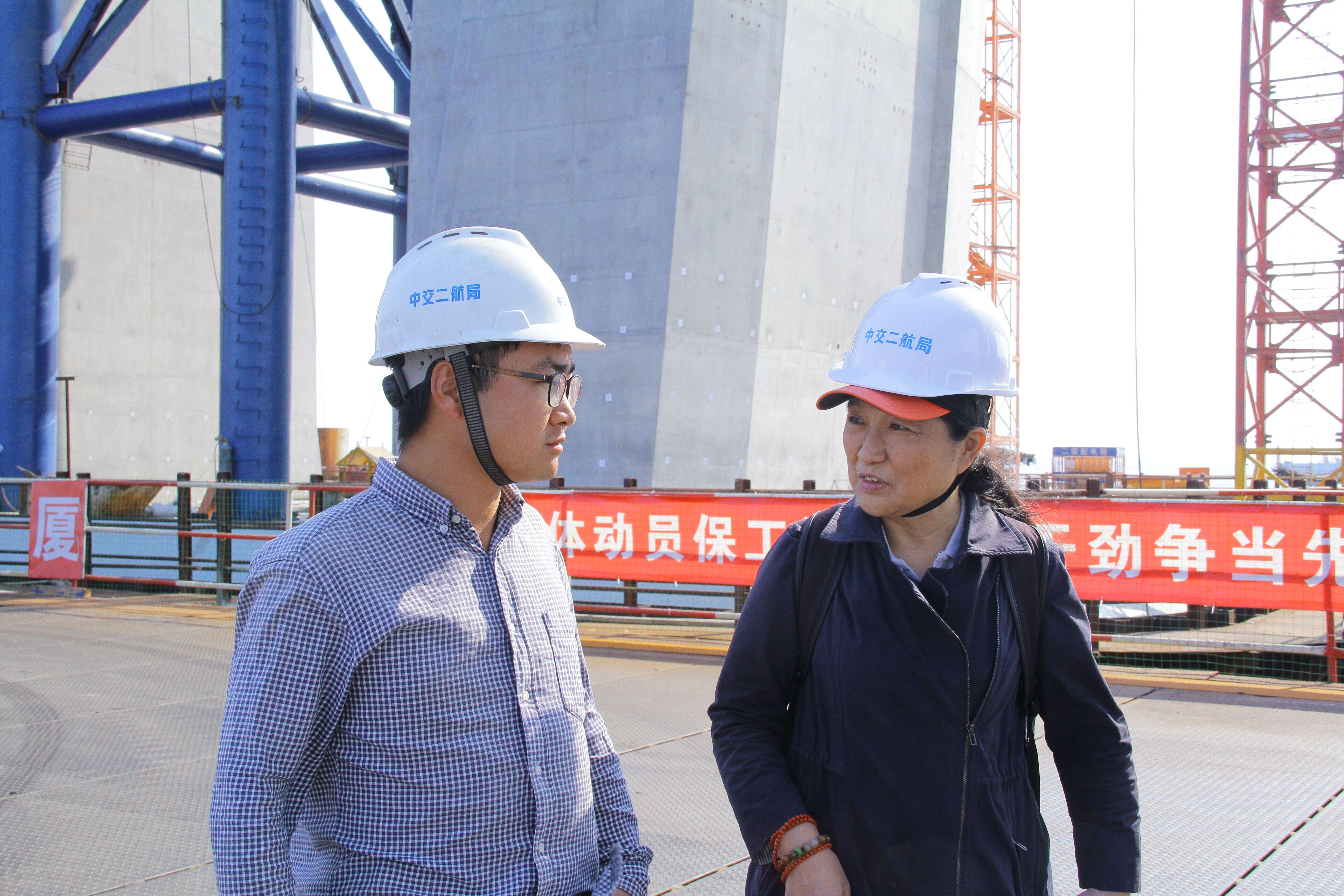 随后,肖平教授来到泉州湾跨海大桥以及安海湾跨海大桥施工现场进行实地考察,通过人文视角了解当代工程师以及建设团队目前在工作、生活中的真实情况,并在访谈中积极寻求当下学科教育教学如何与社会工作实践实现紧密结合的方法和举措。