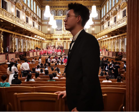 今年4月,我从省内126所高校的千余人当中脱颖而出,作为第一批团员加入了成都市大学生合唱团,代表交大远赴维也纳参加世界和平合唱节,作为交大音乐人第一次放歌金色大厅,取得了此次比赛的第一名,并受到罗强市长的专门祝贺!