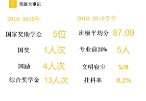 下一个数据是96,三年来,我班共获奖项荣誉96项,囊括专业国奖,感恩中国近现代科学家奖学金,奖学金人次覆盖率达70%;共计65人次在科研训练和学科竞赛获得成果,其中50多项专业获奖,平均一个人就有2张专业相关的奖状;