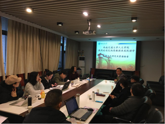 邀请,2019年12月16日上午,美国肯恩大学历史系孔旭荣教授在犀浦校区X8210作了题为“美国方志研究及资源检索”学术讲座。参加讲座的有中文系汪启明教授、周俊勋教授、唐新梅副教授和杨建军老师。讲座由周俊勋教授主持,相关专业博士生、硕士生参加。