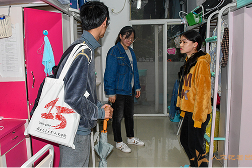 9月28日晚6时,木瓜视频 党委副书记郭立昌、团委书记刘爽老师以及全体辅导员对木瓜视频 本科和研究生宿舍展开国庆之前的寝室检查工作。