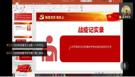本科传播党支部围绕贯彻落实党中央关于常态化疫情防控决策部署,组织党支部全体党员线上观看“党旗飘扬,筑牢红色防火墙”高校党组织战“疫”微党课直播。