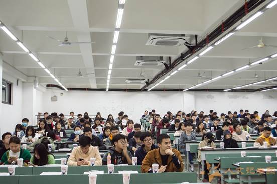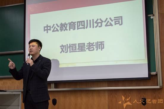 接着中公教育的刘恒星老师先给同学们分享了一段关于中公教育成功上市的视频,并为同学们分析了2020年国内的就业和考研形势,然后介绍国内硕士扩招的情况,在指出专业和就业之间的关系后,他又向同学们介绍中公教育的情况,指出中公教育秉承着“实用、有效、专业、深度”的办学宗旨,依靠强大的师资阵容和深厚的自主研发实力,以学员为根本,以创新为动力,以卓越为目标,致力于为学员提供专业的教学服务。同时将中公教育和其他培训机构作对比,得出三点优势:一是拥有50000多人的师资队伍,团队的研发和教学实力雄厚;二是拥有多个实训基地,可以满足不同城市及地域的同学跨区域学习的需求;三是小班教学,配有单独的班主任,对学生的个性化服务做到极致。他希望中公教育丰富的学习资源和多样化的服务可以帮助同学们实现考研及考公的梦想。