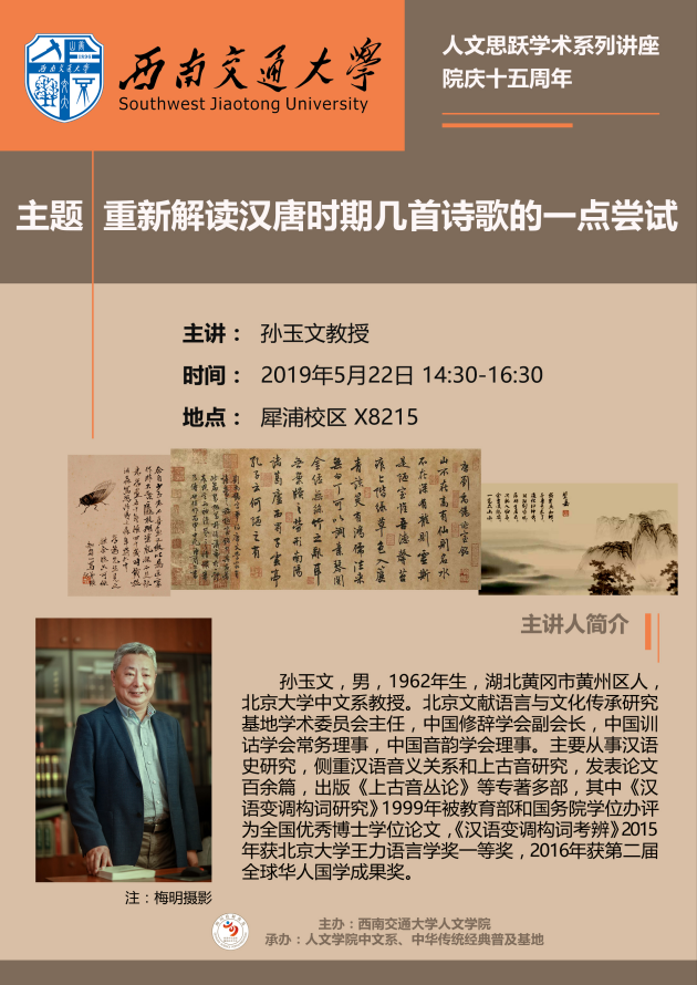 讲座主题:重新解读汉唐时期几首诗歌的一点尝试