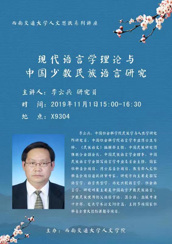 【讲座题目】现代语言学理论与中国少数民族语言研究