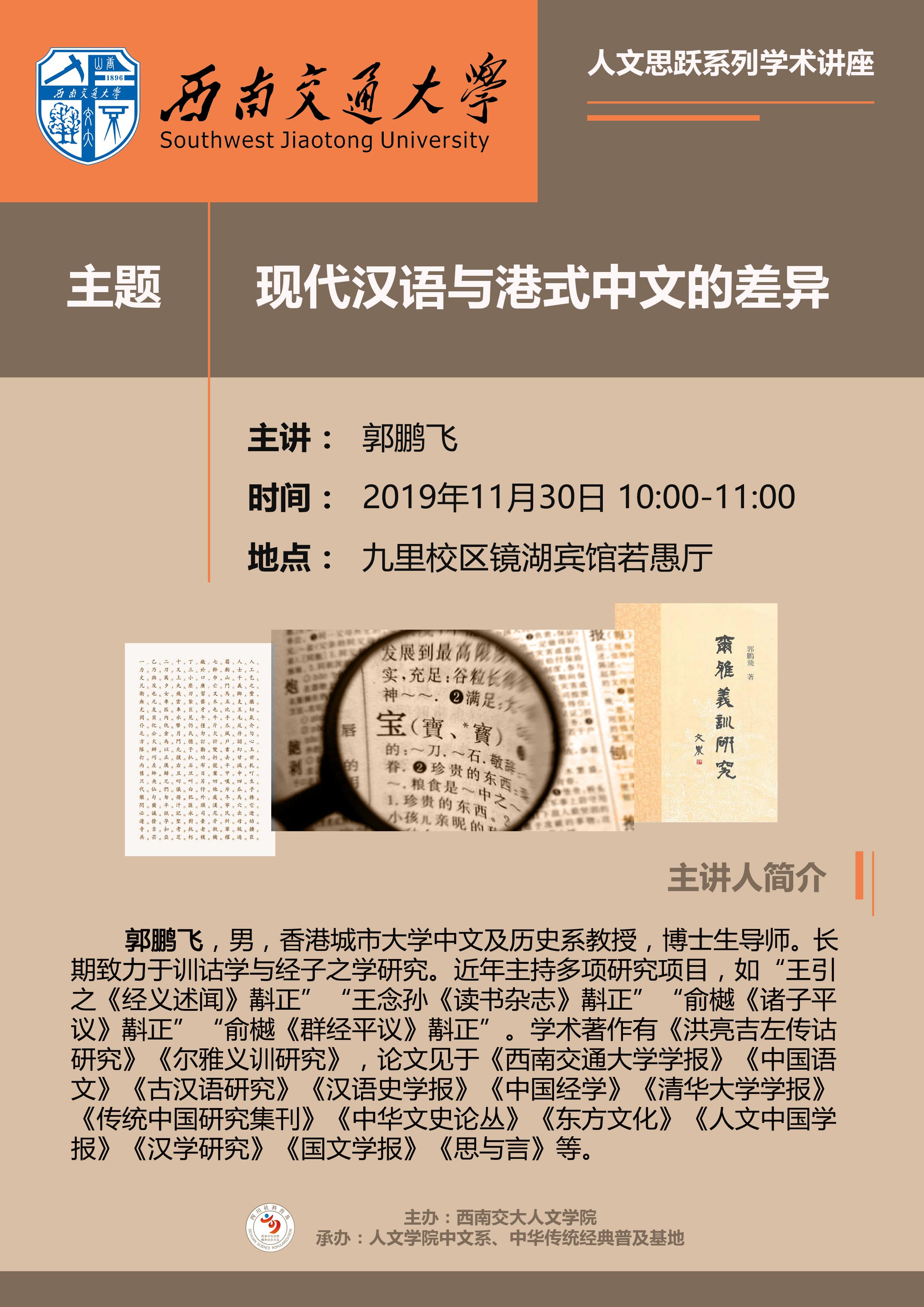 【讲座地点】九里校区镜湖宾馆若愚厅