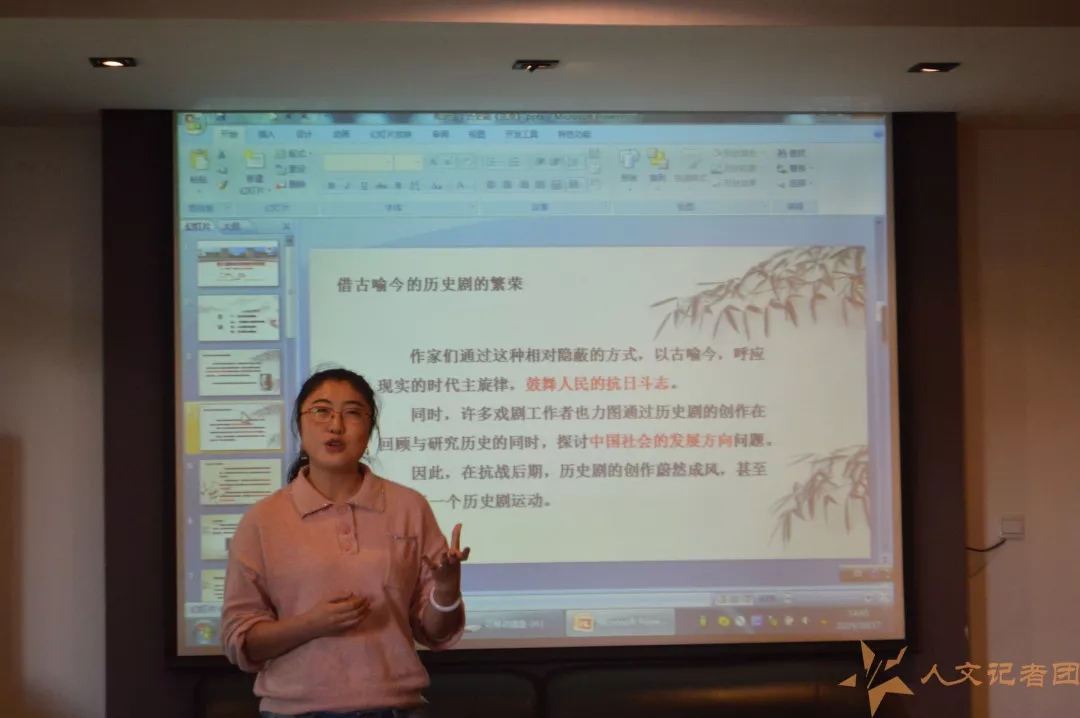 王苑媛、魏刚、赵川三位老师分别带来了美学概论、文学与人类情感关系和中国历史文物与考古的课程展示。王苑媛老师以学者本雅明为引,探讨20世纪美学面临的新问题,对比机械复制时代与传统时代的艺术品,分析利弊;魏刚老师以视频与诗文演示,指出要通过作品来体察文学与人类情感关系;赵川老师以《阿房宫赋》为例,并结合考古实况解析,最后布置阅读文献记载作业引导学生自主思考。