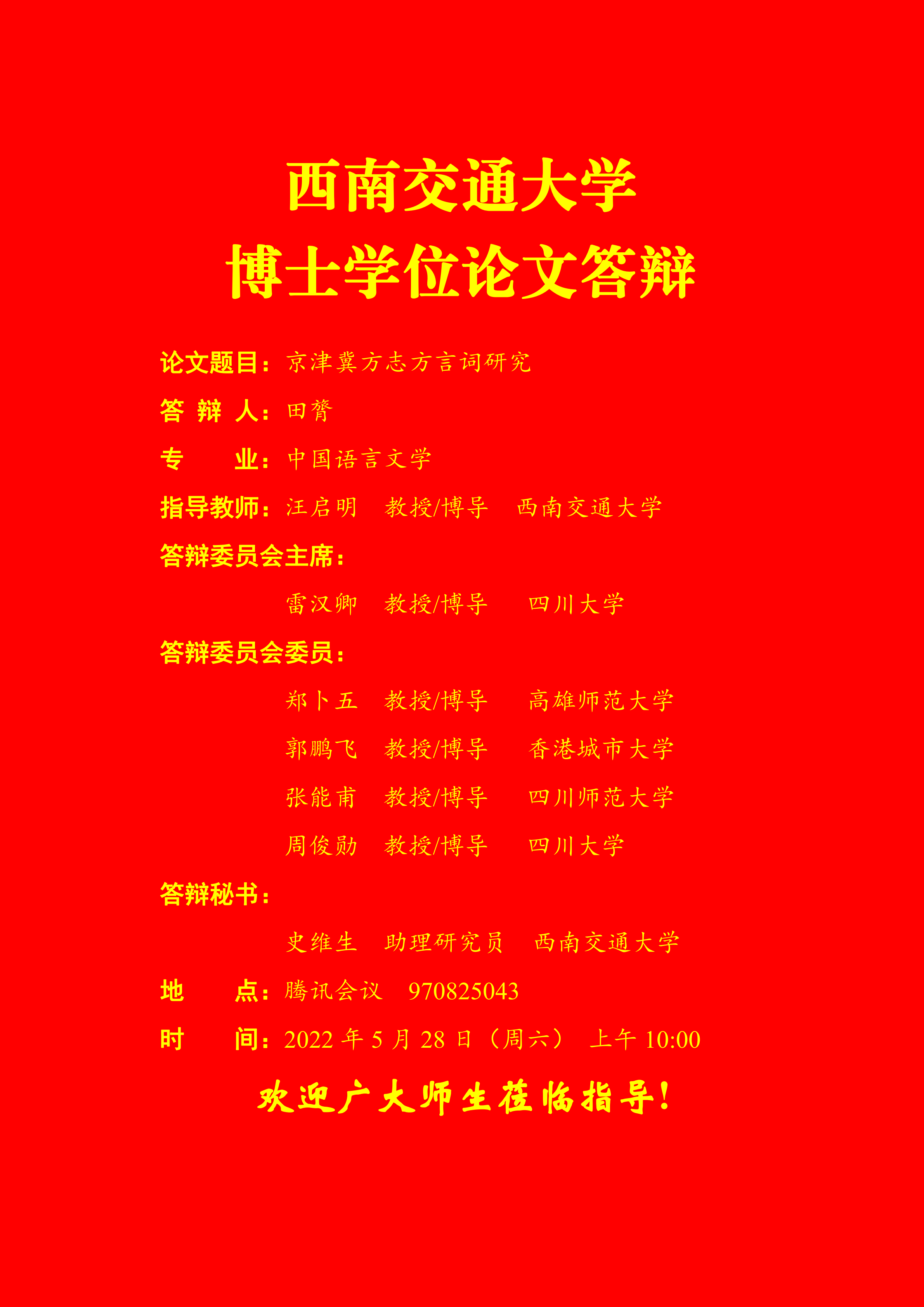 【博士答辩】木瓜视频 博士研究生学位论文答辩海报