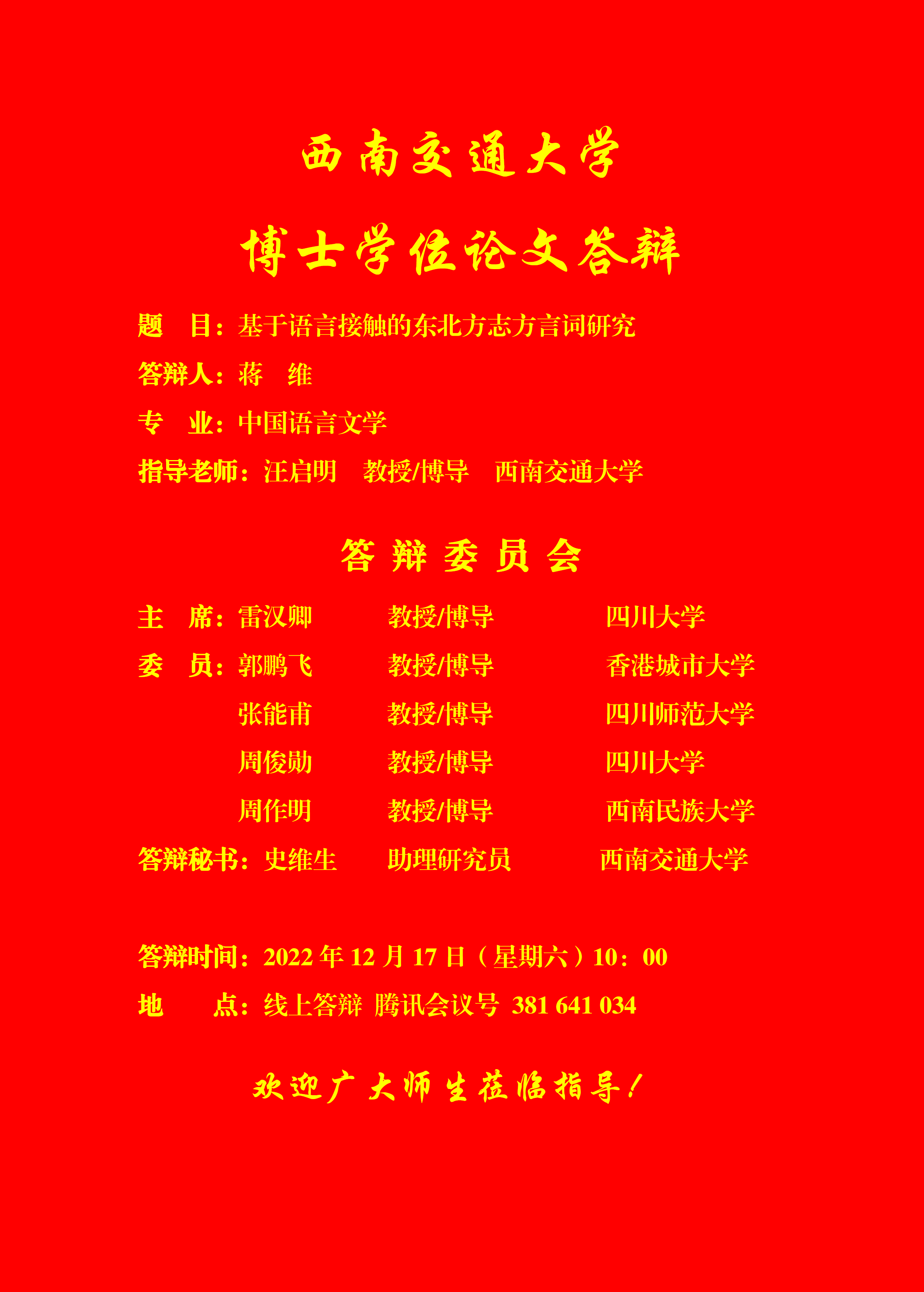 【博士答辩】木瓜视频 博士研究生学位论文答辩海报
