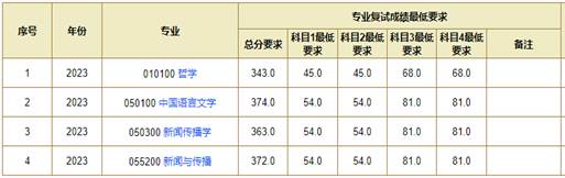 第一志愿报考我院各专业非专项计划的考生,初试成绩达到下表中对应专业的成绩要求,方才具备复试资格。