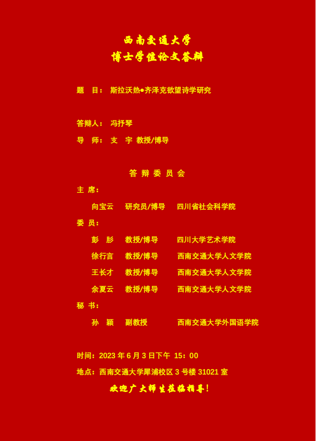 【博士答辩】木瓜视频 博士研究生学位论文答辩海报