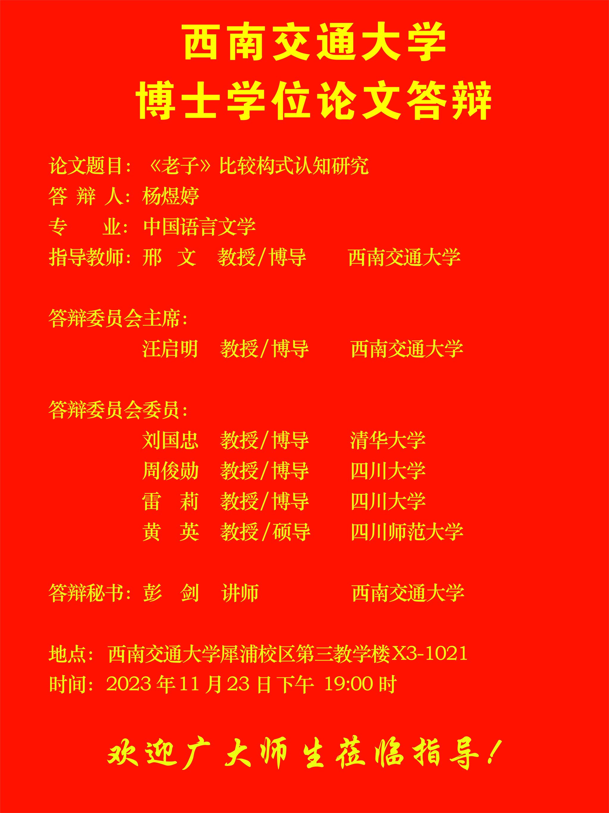 【博士答辩】木瓜视频 博士研究生学位论文答辩海报