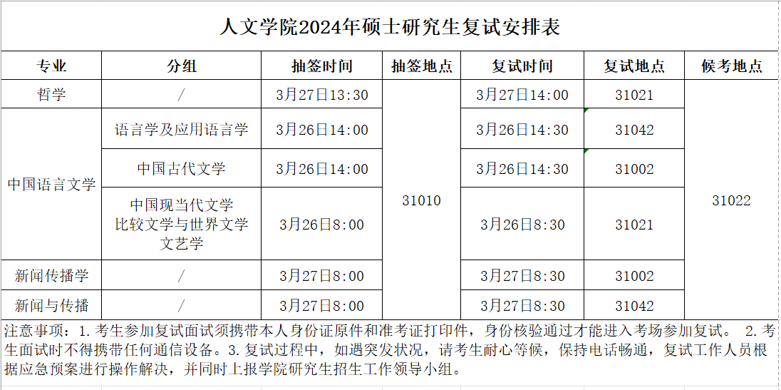 【硕士研究生招生】木瓜视频 2024年硕士研究生复试安排表