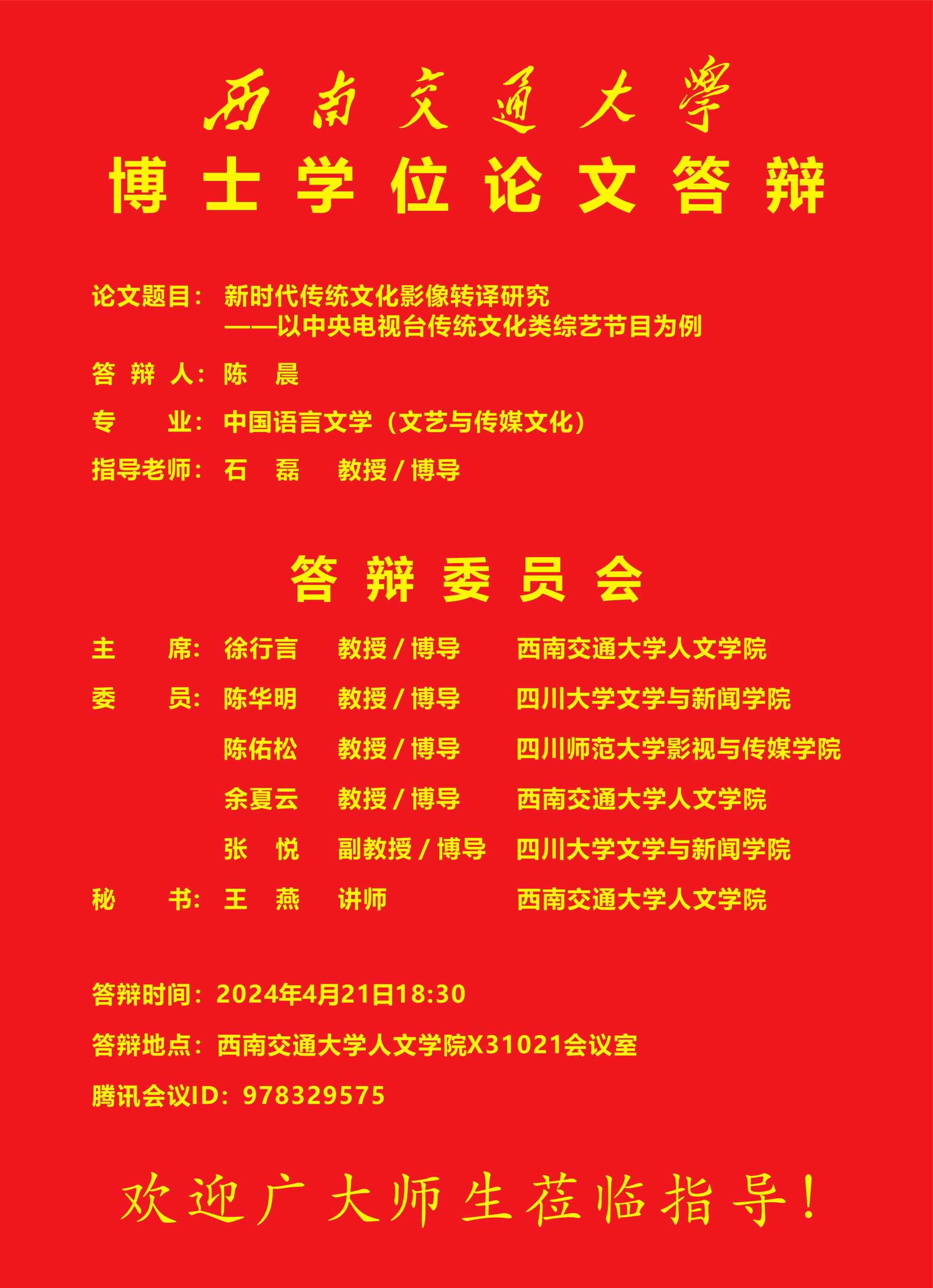 【博士答辩】木瓜视频 博士研究生学位论文答辩海报