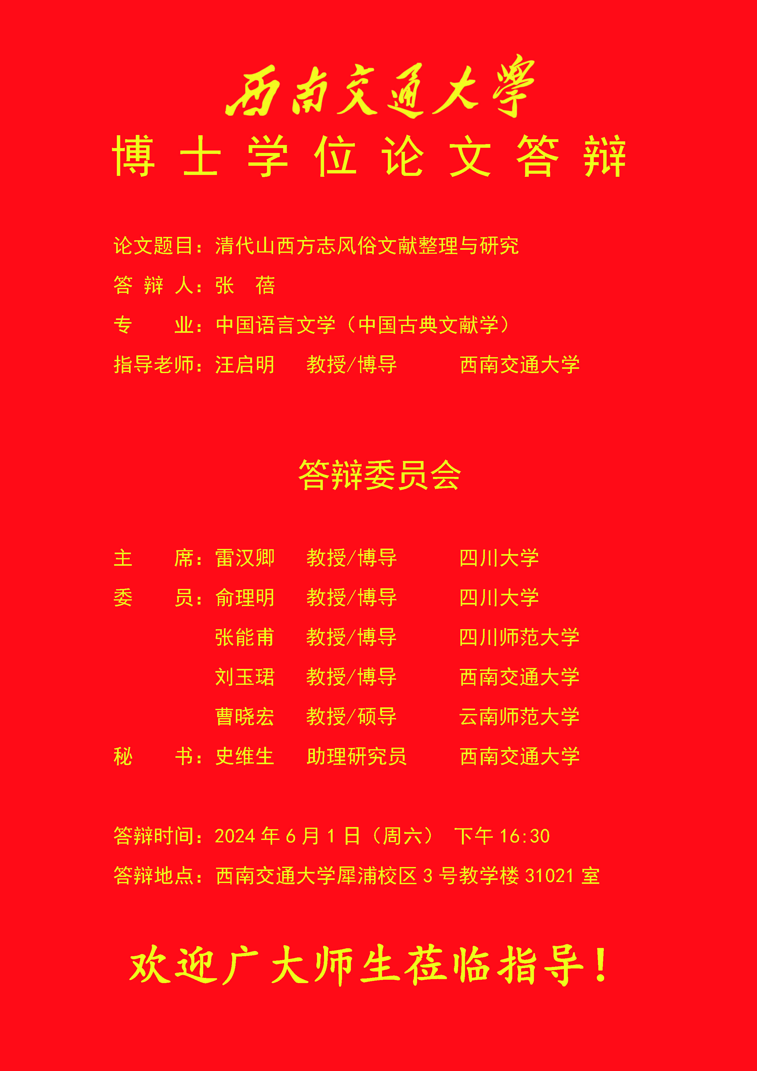 【博士答辩】木瓜视频 博士研究生学位论文答辩海报