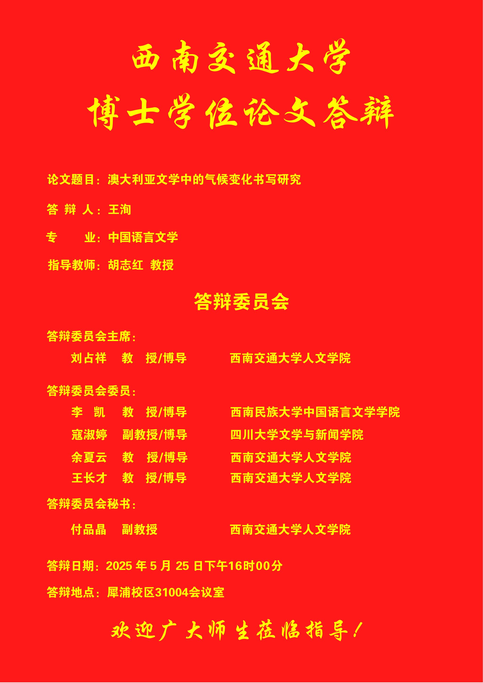 【博士答辩】木瓜视频 博士研究生学位论文答辩海报