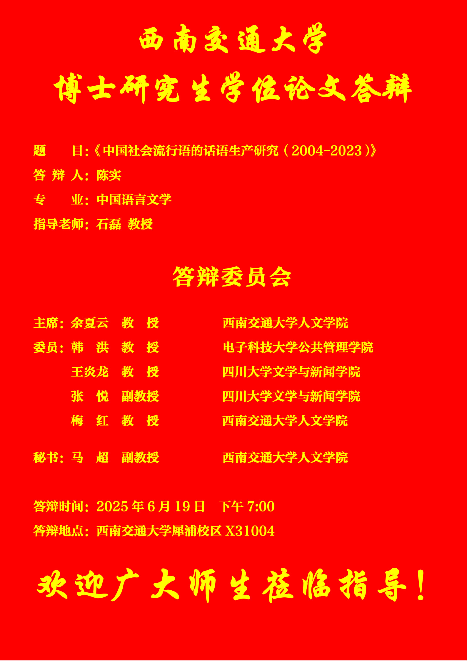 【博士答辩】木瓜视频 博士研究生学位论文答辩海报