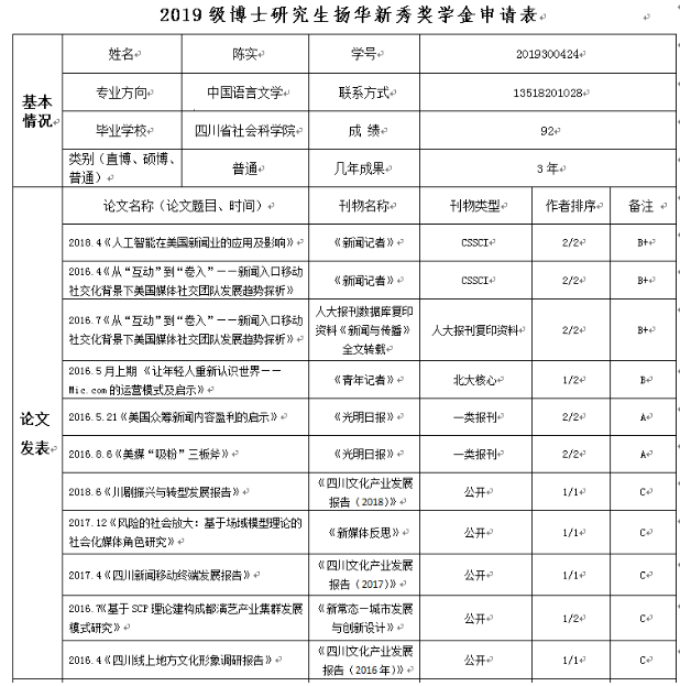 根据《木瓜视频 关于下拨2019级研究生奖学金指标及金额的通知》要求,木瓜视频 研究生奖助工作委员会按照《木瓜视频 博士生扬华新秀奖学金评选管理暂行办法》,对符合条件的申请者进行评选,现将拟获奖名单公式如下: