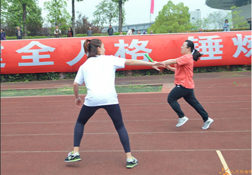 A number of teachers in the College of Humanities also showed high standards in various competitions, such as in women's 60m final for teachers and workers, Chen Hangui won the first place with a comprehensive score of 13 points in group B. In men's 4x100m final for teachers and workers, the teachers' team representing the College of Humanities composed of Mr. Wang Qiang, Mr. Li Fan, Mr. Peng Jian and Mr. Chen Long won the eighth place in group A. The representative team of Humanities, composed of Liu Mingyue, Liu hanyue, Chen Hangui and Fu Pinjing, won the third prize in the group, taking just 1 minute and 11.59 seconds to hit the line.