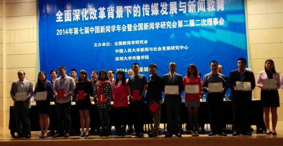 艺传学院蒋宁平副教授荣获全国新闻学青年学者优秀学术成果奖11月8日至9日,由全国新闻学研究会主办的“2014年第七届中国新闻学年会”在深圳大学隆重召开,第二届“全国新闻学青年学者优秀学术成果”表彰仪式于会议期间举行,木瓜视频 艺术与传播学院蒋宁平副教授的新闻学学...