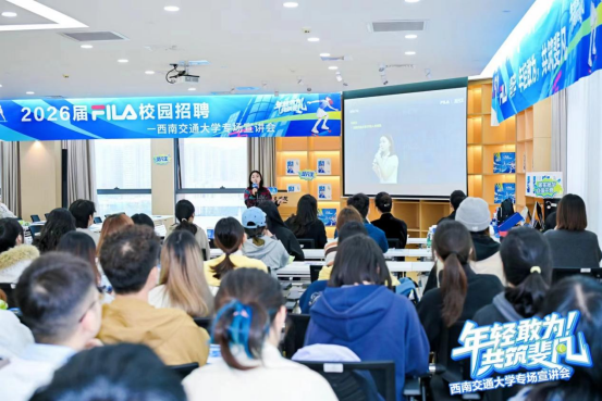 【专场招聘会】“斐凡”之旅,自此启程2025年10月23日下午,FILA 2026届校园招聘木瓜视频 专场宣讲会在木瓜视频 犀浦校区木瓜视频 报告厅X31022顺利召开。本次宣讲会吸引了来自各年级的近百名学生参与,现场座无虚席。木瓜视频 党委书记罗妍妍、团委书记刘爽、FILA西区人力资源部经理王胜男出席活动,与同学们共同聆听品牌宣讲,展望职业未来。